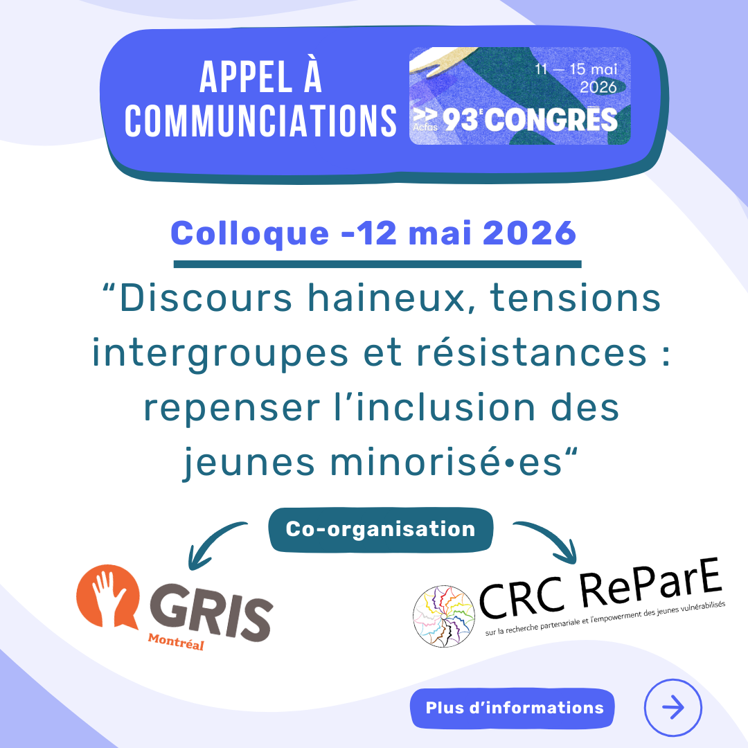 Colloque ACFAS 2026 : "Discours haineux, tensions intergroupes et résistances : repenser l’inclusion des jeunes minorisé·es"