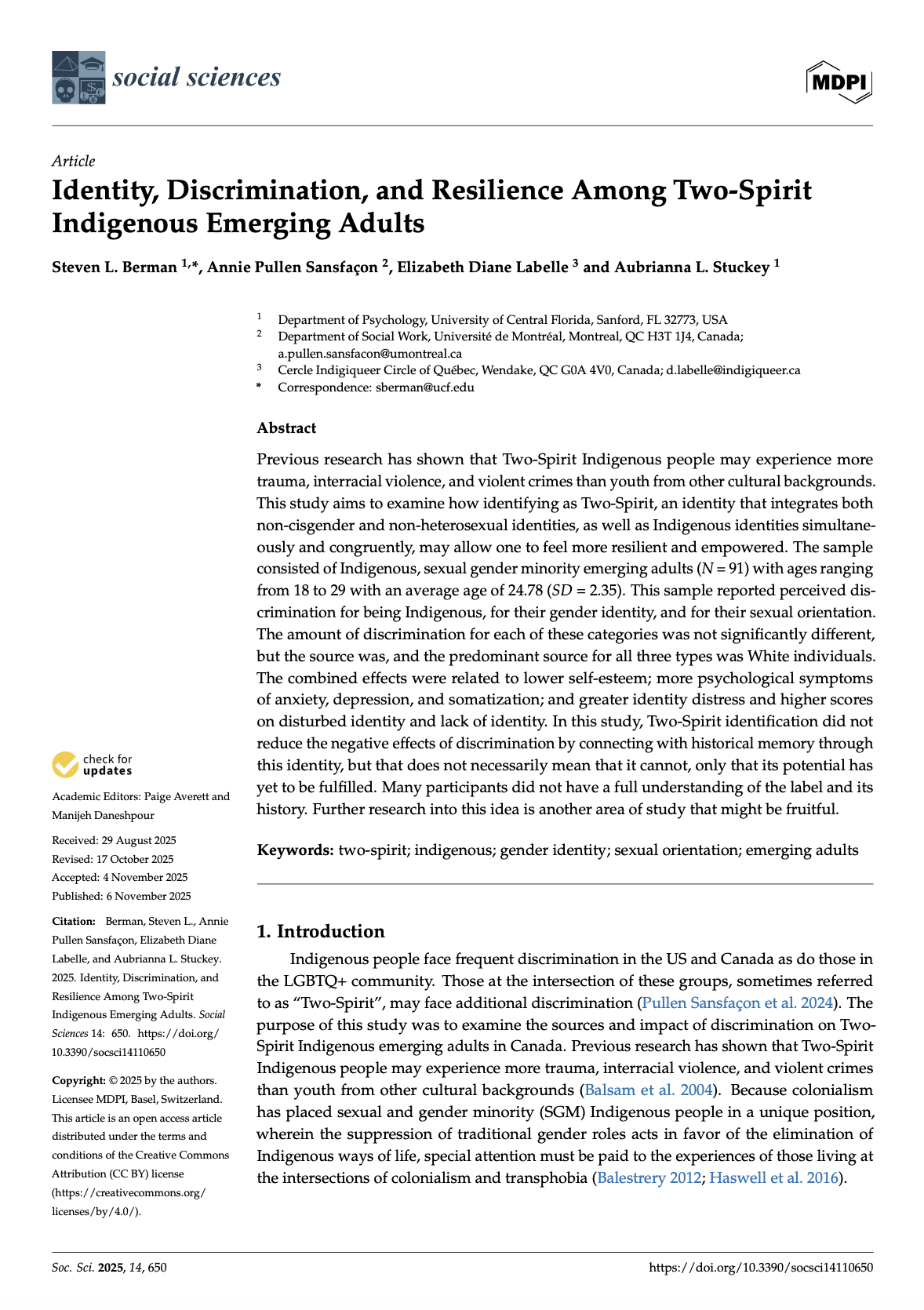 Identity, Discrimination, and Resilience Among Two-Spirit Indigenous Emerging Adults.